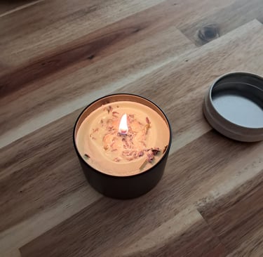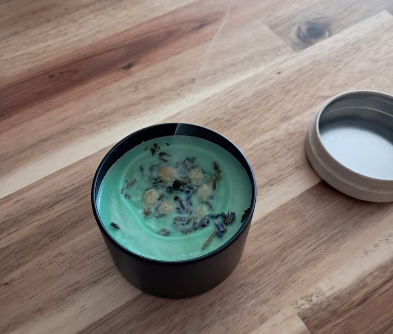 Let the candle cool down for approximately 30min, then you can put in some dried flowers to make it prettier. If you like it without the flowers, let the candle rest until it isn't warm anymore.